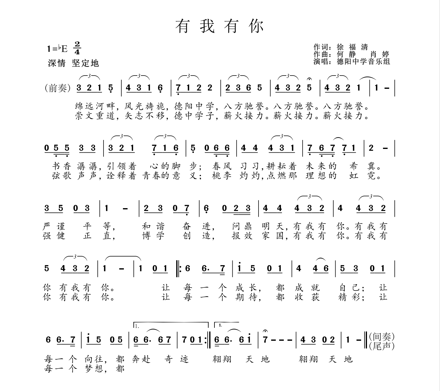 赞曰:昔有文昌故宫,今为德阳中学。始于抗战三九,名于建国之初。传八十载薪火,历曲折之变迁,乃于2001拓玉泉校区,2008逢灾后重建。创国重,立品牌,发展至今,三校齐盛,享誉四方。